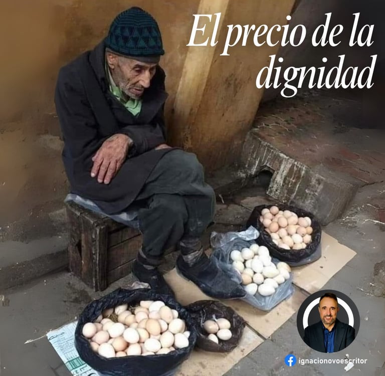 Una mujer se detuvo frente al puesto de un anciano que vendía huevos.